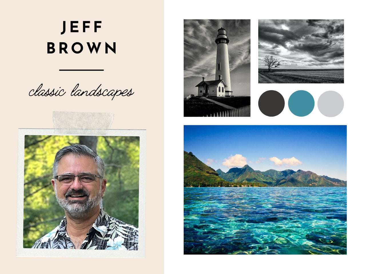 Jeff Brown takes inspiration from the classic photography masters, beginning his journey with film cameras over 40 years ago. When describing his photographic style, he refers to himself as a "borrower of light".