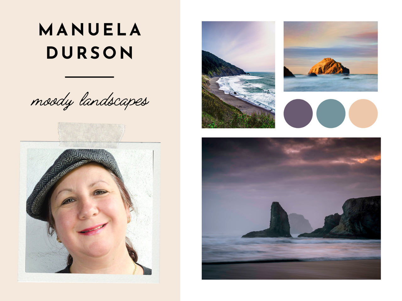 Manuela Durson's fine art photography is inspired by nature's beauty. Her style combines dream-like long exposures with dramatic coastlines, favoring the Oregon and California coastlines.