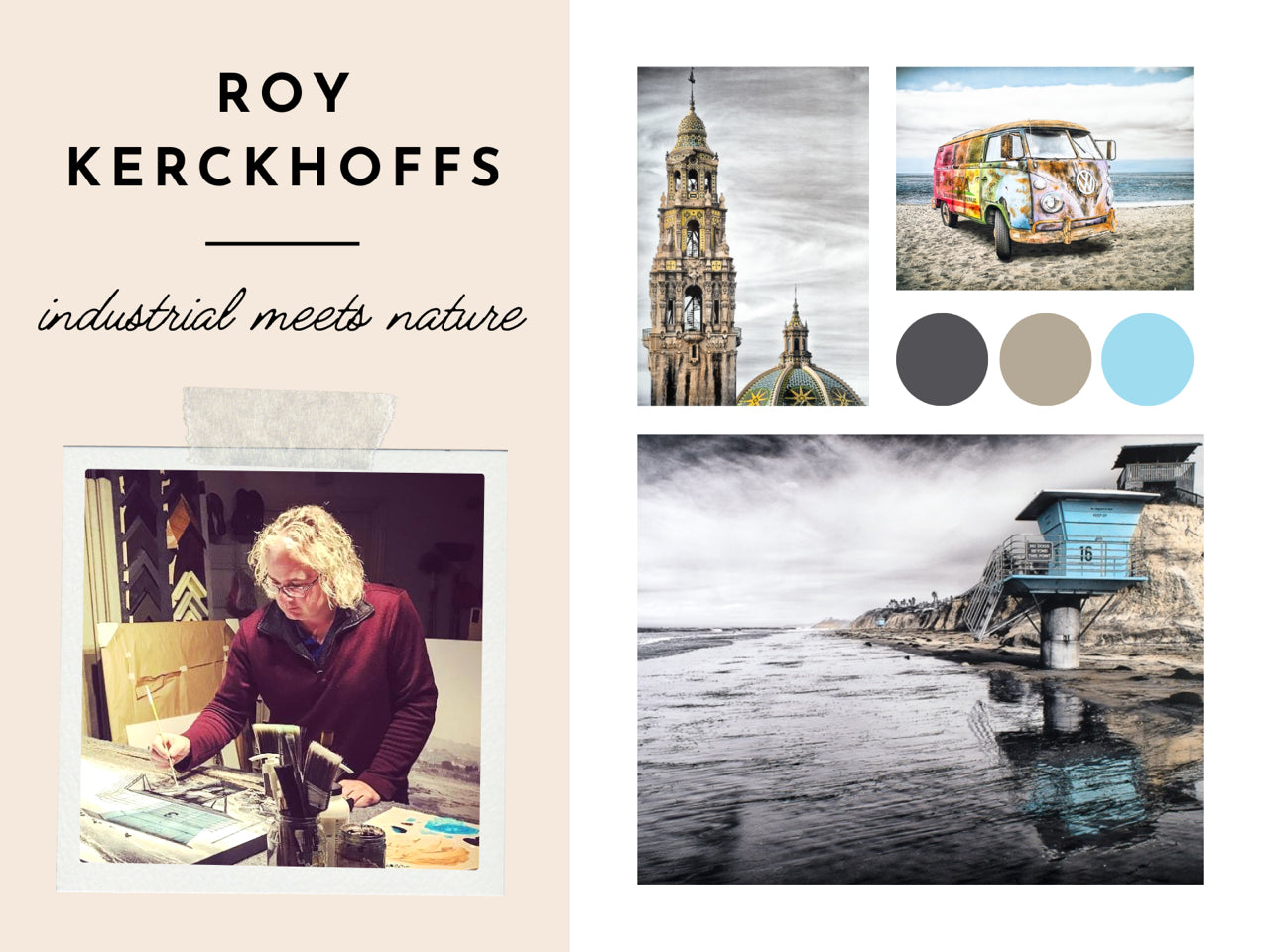 Roy hand paints color on his black and white coastal photographs with specialty photo oils. He finds inspiration in industrial structures contrasting with organic natural forms. Originally from the Netherlands, Roy developed an interest in art from a very young age.